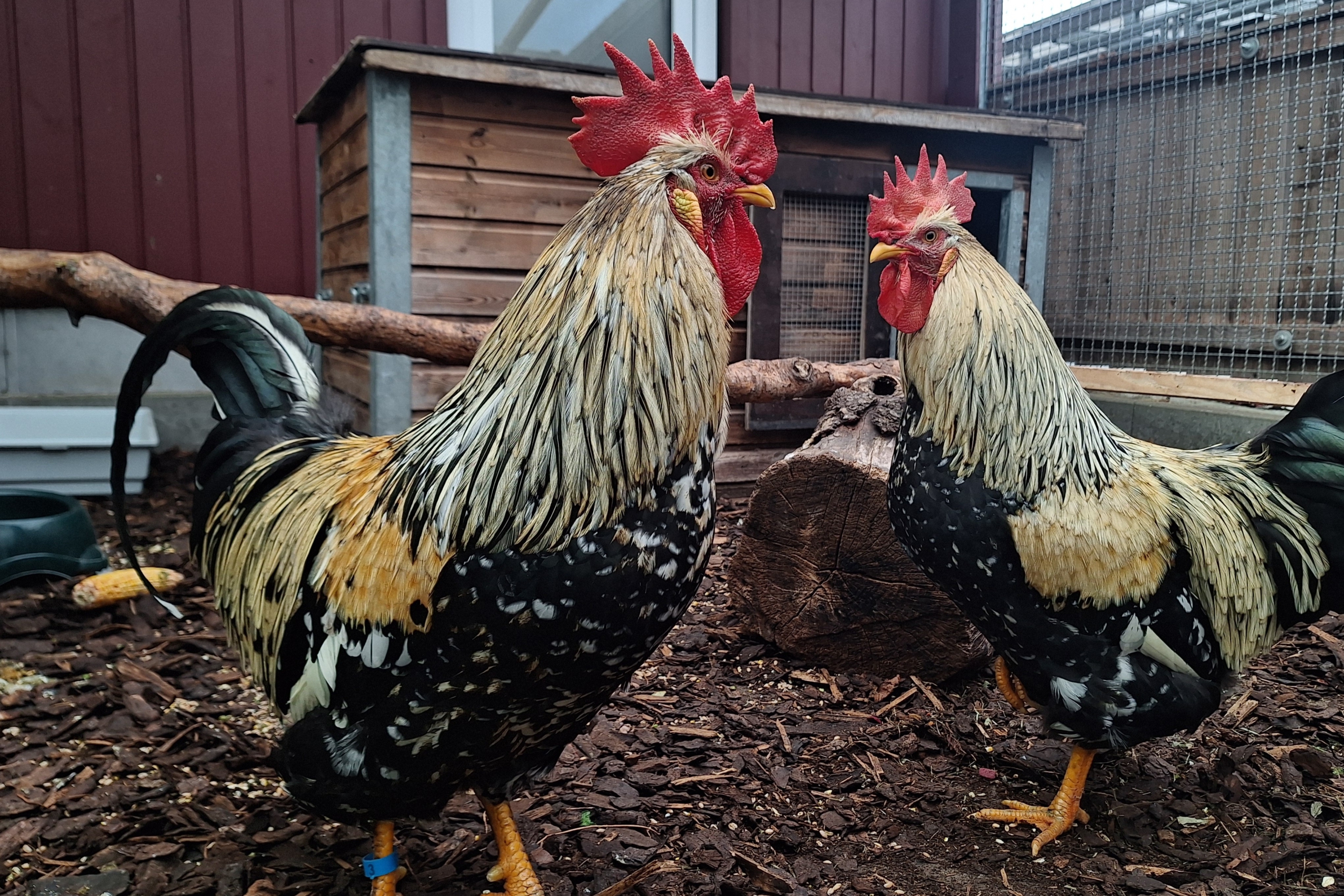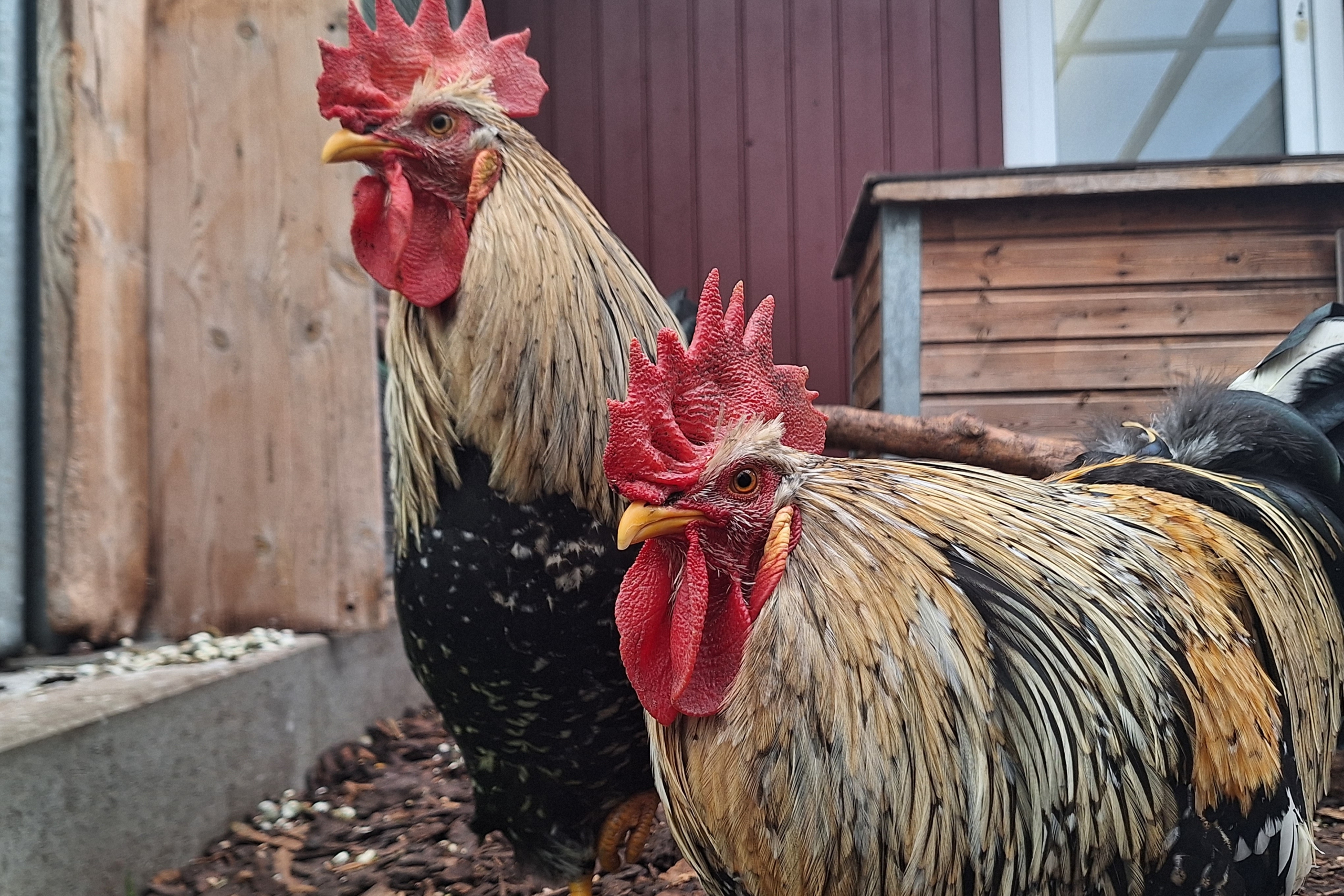 Emil und Eduard sind zwei freundliche, neugierige und aufgeschlossene Hähne mit einer Vorliebe dafür, Mehlwürmer aus der Hand ihrer Pflegerinnen und Pfleger zu naschen. Die beiden freuen sich über Zuschriften und Vorschläge für ihr ganz eigenes Für-Immer-Zuhause.