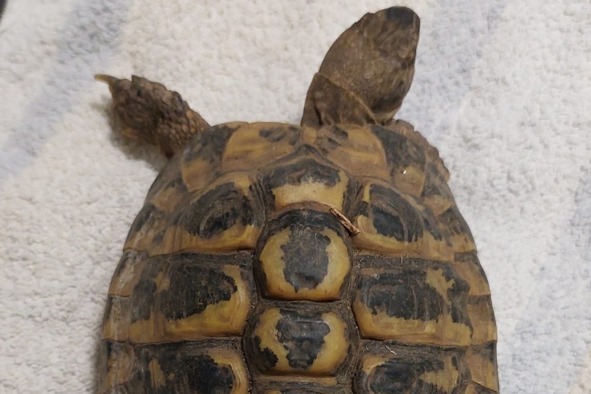 Diese griechische Landschildkröte wurde am 18.04.26 in Gilching in der Weichselbaumer Straße gefunden.