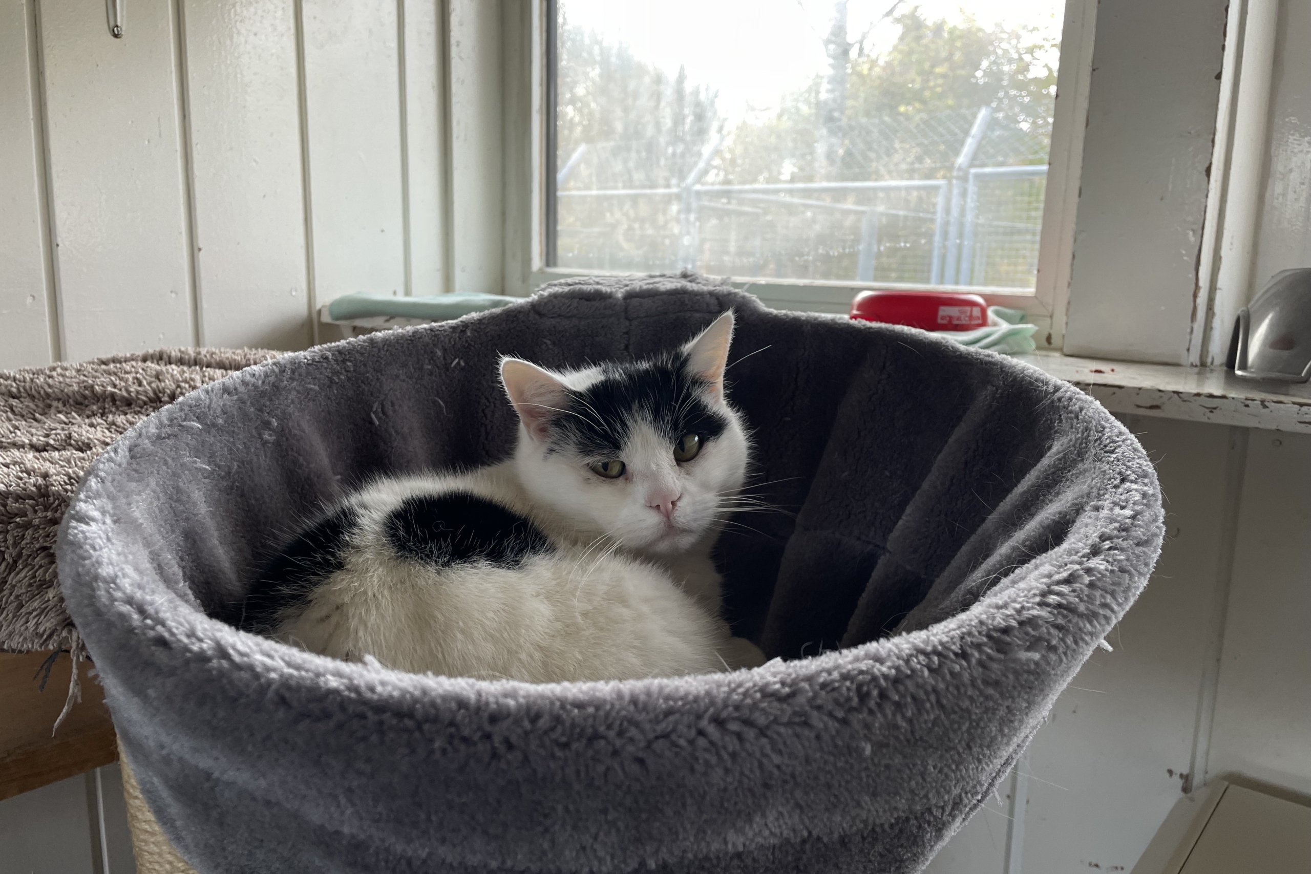 Sumsi ist eine sehr schüchterne Katze, daher suchen wir einen ruhigen Platz mit Freigang für sie.