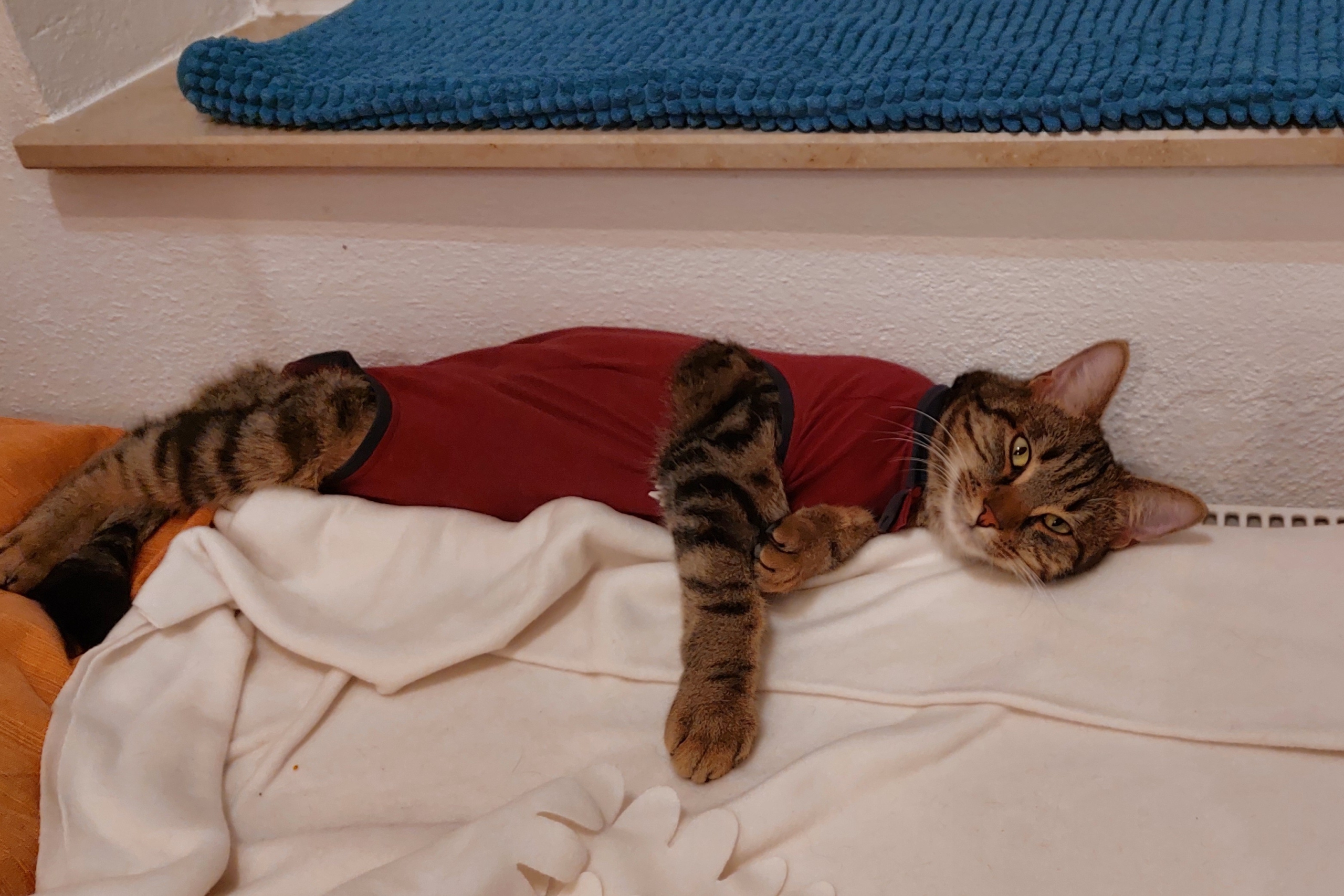 Nach der schweren OP verheilen die Wunden gut, um die seelischen Wunden kümmert sich unsere liebe Pflegestellenmama aufopferungsvoll. Der kleine Sonnenschein hat uns alle schnell um den Finger gewickelt ;)