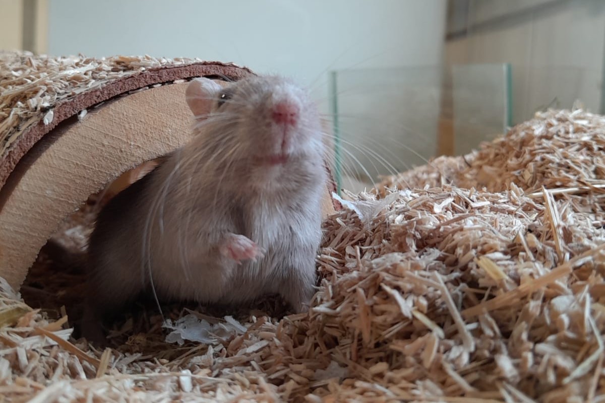 Die Wüstenrennmäuse Devi und Shanti sind ca. 4 Monate alt und zu uns ins Tierheim gekommen, weil sie sich in der großen Gruppe nicht verstanden haben.