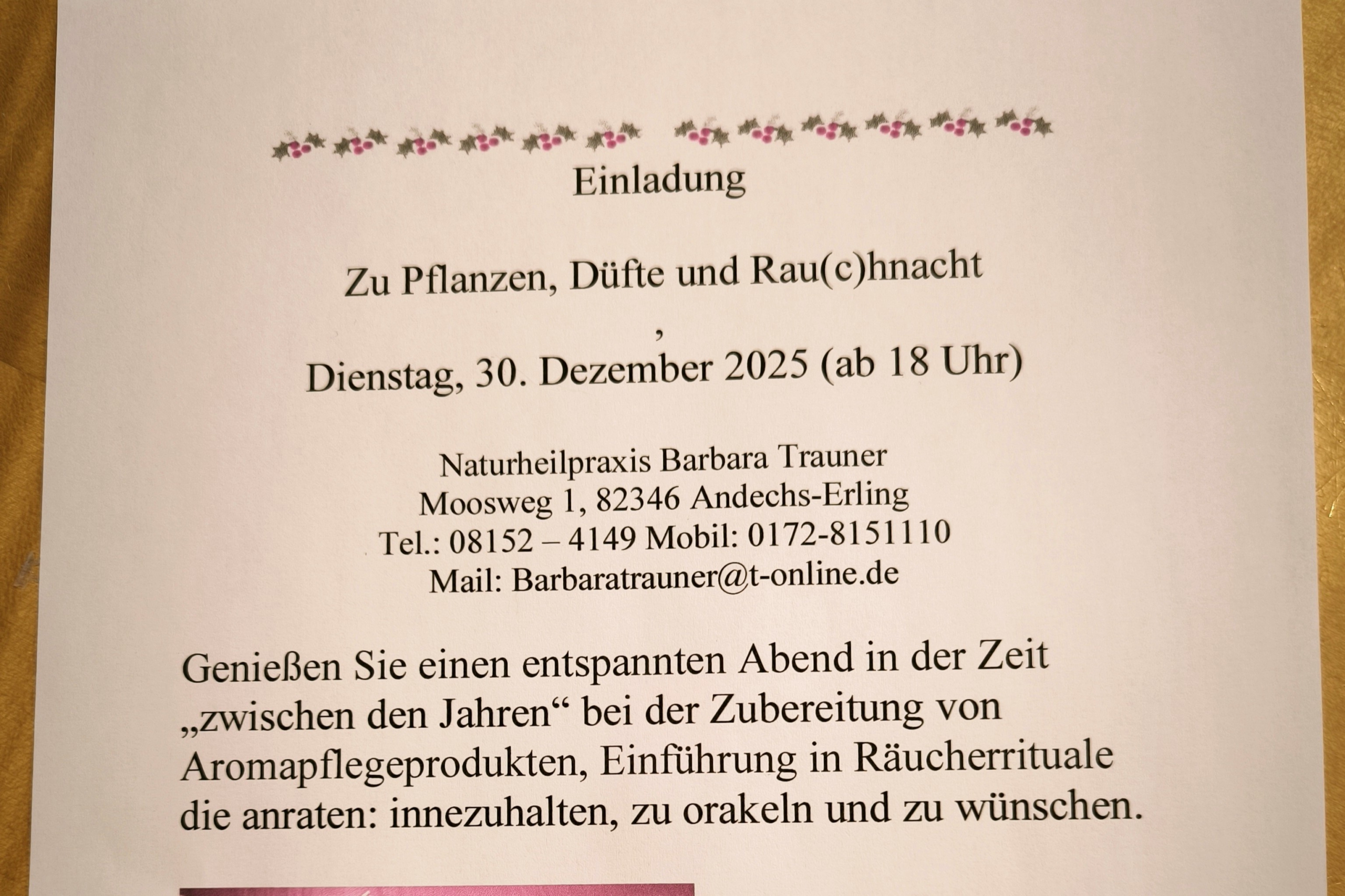 Wir haben am 30.12.25 einen wunderschönen Aroma- und Rau(c)hnachtsabend verbracht.